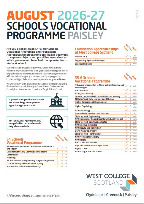 The full WCS schools vocational booklet for pupils moving into S4 next session can be accessed here.